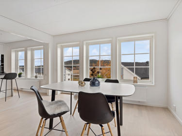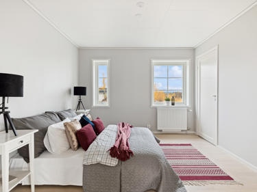 Et av husene til salgs er husmodellen Fanny, et smart hus med en god planløsning og to soverom i første etaje, hvorav det store har et eget walk in-closet og eget toalett. Den L-formede kjøkken/stue løsningen er plassert lengst inn i huset med vinduer langs hele gavelen og to helglassede terrassedører. Her kan du tilbringe mange kvelder med utsikt over hagen.