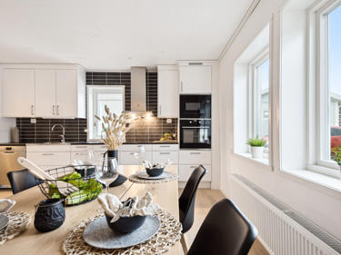 Her kan du flytte rett inn i et stort, nytt hus med hage - i trygge, rolige og naturskjønne omgivelser, men likevel bo i nærheten av det du trenger og med kort vei til større byer.