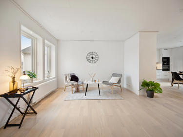 Et av husene til salgs er vinkelhuset Josefine, et romslig hus på ett plan med tre soverom og to bad, et walk-in-closet og vaskerom med egen groventré. Den skjermede uteplassen i vinkelen gir en privat oase hvor du kan nyte morgenkaffen i fred.