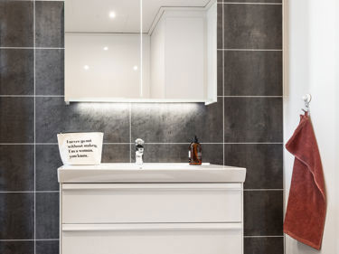 Gjør badet enda mer spennende ved å lage en fondvegg. Fondveggen kan velges i valgfri farge og form blant vårt utvalg, og den settes alltid på veggen bak servanten.