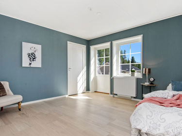 Gå rett ut i hagen eller terrassen fra soverommet. Balkongdøren slipper inn det naturlige lyset og får rommet til å føles større. Tilvalget kan velges ihht tegning. Vil du ha enda mer lys inn anbefaler vi tilvalget helglasset balkongdør.