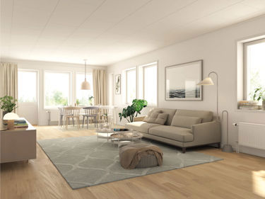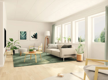 I stuen og i visse soverom leveres halvglasset vindusdør som standard. For å få enda mer naturlig lys i rommet kan du velge tilvalget "helglasset balkongdør".