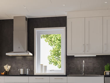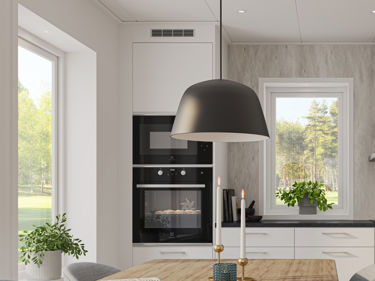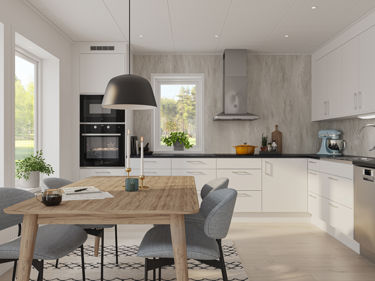 Til noen av våre husmodeller kan du velge et ekstra vindu over kjøkkenbenken. Det gir rommet et mer åpen følelse og bringer naturlig sollys inn på kjøkkenbenken.
