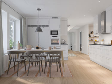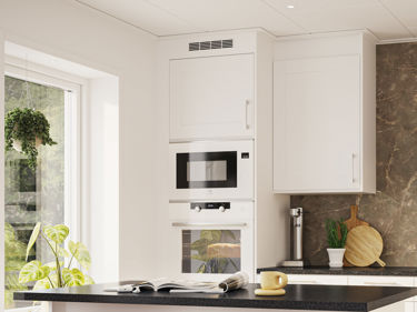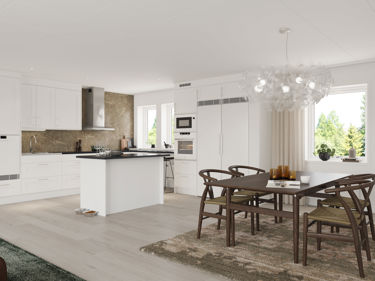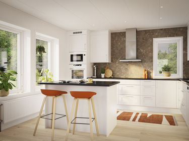 Kjøkkenet er husets kanskje viktigste arbeidsplass og en naturlig samlingsplass for hele familien. Älvsbyhus har derfor valgt å levere huset med hvit innbygningspakke