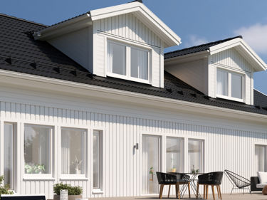 Gi huset ditt et utvendig løft og størrelse, samt lys til overetasjen, ved å velge dobbel ark på taket. Kan velges til baksiden av huset på husmodellene Astrid, Edith, Edvard og Henrik.