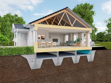 Grunnmuren er selve fundamentet i husbyggingen. Alle Älvsbyhus bygges på spesiallaget krypgrunn. En stabil grunn som uten noen større inngrep gir deg mulighet til å komme til de fleste av husets tekniske løsninger og konstruksjoner. Grunnmuren og montering av denne er selvsagt inkludert i husprisen. Har du ikke flat tomt? Ta kontakt med din boligformidler for mer informasjon og gratis tomtebefaring.