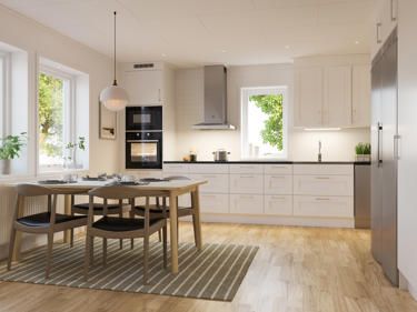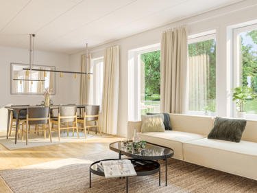 Her har vi prosjektert det koselige 1,5 etasjes huset Selma - et av våre mindre hus med plass til mange rom. Her kan huset lett vokse sammen med familien med den 44 kvm innredningsbare overetasjen. Selma er et sosialt hus. Både kjøkken og stue får ta ordentlig med plass. Her kan dere spille brettspill i på kjøkkenet og se favorittfilmen i stua. Sommertid trenger du bare åpne balkongdøren fra sofaen og ha oversikt over lekende barn.