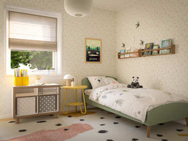 Barnas soverom er samlet i én del av huset, med et eget allrom og kort vei til det lille baderommet i hallen. Og hovedsoverommet kan lett bli til en ensuite med direkte tilgang til det store badet via garderoben.