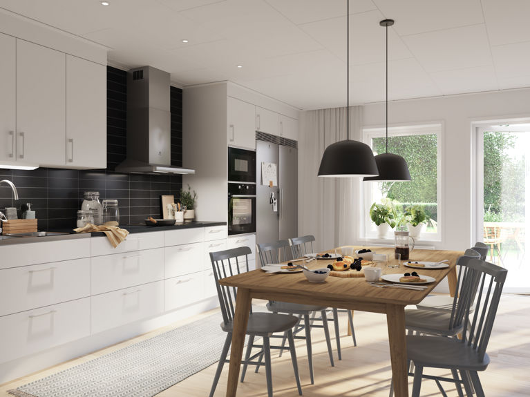 Maja er dessuten et hus som man gjerne kan omgås i, hvor den åpne planløsningen mellom kjøkken og stue gjør huset sosialt. Her kan du ha morsomme selskapsleker eller underholde middagsgjestene i stuen samtidig som du forbereder det gode måltidet i kjøkkenet. Sommertid trenger du bare åpne terrassedøren og ha oversikt over lekende barn fra sofakroken.
