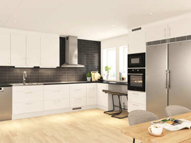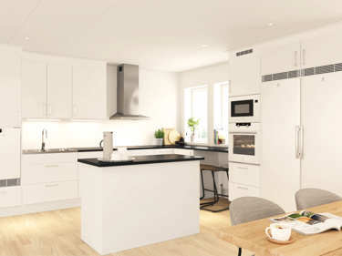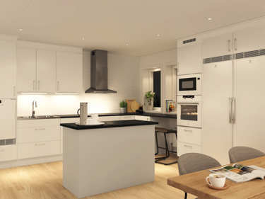 Liker du også å tilbringe tid på kjøkkenet? I vårt enetasjes hus Minna smelter kjøkken og stue helt sammen. Her kan du kose deg med både helgebaksten og herlige måltider samtidig som du omgås familie og venner.