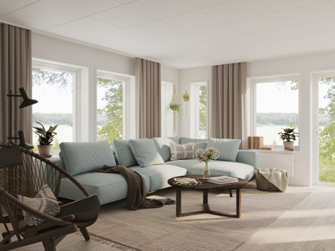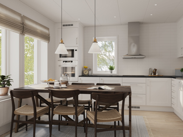 På overetasjen finnes det mulighet for å legge til 1-3 rom – og her bestemmer du helt selv hvordan og når du vil gjøre dette etter husleveransen. Kanskje er dere en voksende familie og vil vente med å innrede overetasjen til lenger frem i tid. Eller kanskje dere vil begynne med en gang for å lage plass til ekstra soverom og TV-stue. Til den uinnredde overetasjen inngår alltid trapp, vinduer, underlagsgulv og forberedelser for vvs, el og data.