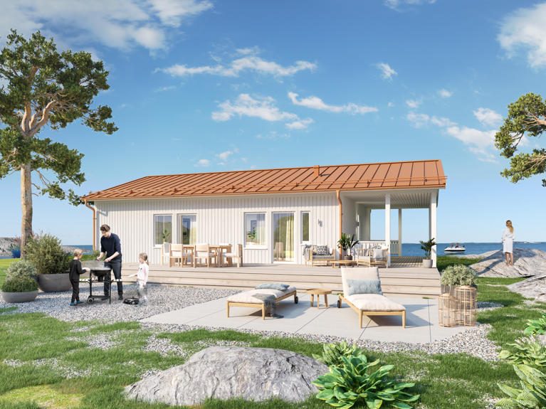 Har du god plass på tomten kan du også velge gavelterrasse som tilvalg og få en lun uteplass hele året.