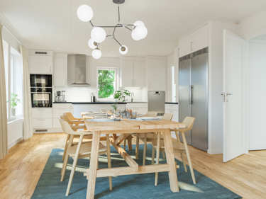 Foruten den magiske utsikten fra kjøkken/stue, kan du lett by inn til både middag og fest her. En kjøkkenøy i kjøkkenet blir da en naturlig bardisk.