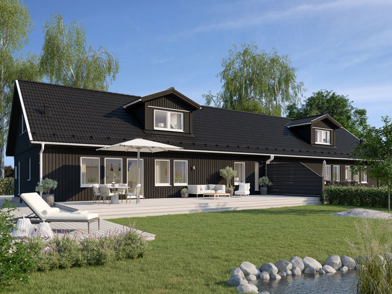 Alle våre 1,5 etasjes boliger kan også fås med tilvalget 34 graders takvinkel med forhøyd veggliv. Det gjør at overetasjen føles større. Bygger du en tomannsbolig må begge husene ha samme takvinkel, noe som kan være bra å tenke på når du planlegger å bygge sammen med andre. Ark på taket er også et populært tilvalg som flertallet av våre kunder velger og som gjør overetasjen både lysere og luftigere.