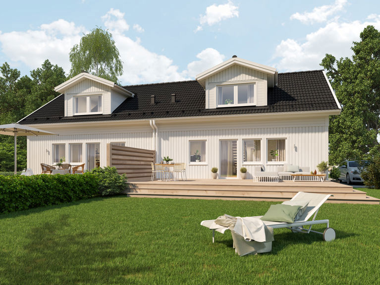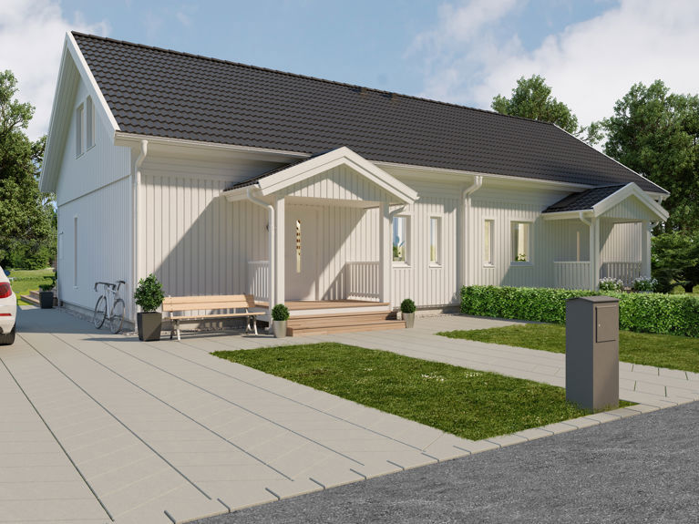 Med Lasse som tomannsbolig får du to små 1,5-etasjes hus på 63 kvm i første etasje. Utmerket for mindre familier og som et hus for enslige eller par uten barn. Uansett om du vil bygge hus med dine beste venner eller bo vegg i vegg med svigerforeldrene dine er, er Lasse et bra valg.